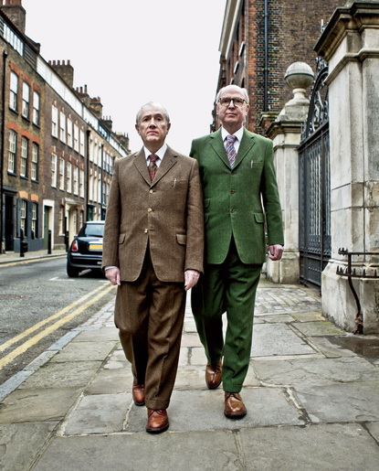 Avvicinandoci faticosamente all’ingresso del ristorante fendendo gli sciabordii molesti della Dalston pre-weekend, diviene immediatamente chiaro che Mangal 2 non era “il ristorante di Gilbert & George”, bensì il ristorante “al quale vanno Gilbert & George”. Sì, perché i due – trasferitisi negli anni Settanta nella non vicinissima Brick Lane, quando il posto era segnato da pogrom anti-asiatici per gentile concessione del BNP, allora molto forte nella zona – da sempre coprono, pare tutti i giorni, quasi cinque chilometri a piedi per mangiare da Mangal 2. Fa parte del loro apparato mitologico: l’essere un’istallazione vivente, il considerarsi una scultura, il vivere e lavorare assieme da quarant’anni, il vestire sempre abiti dello stesso taglio e colore ecc.
